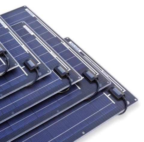 Solar panel miękki (półelastyczny) serii M. Umożliwia lekkie dopasowanie do krzywizny pokładu. Można po nim chodzić.