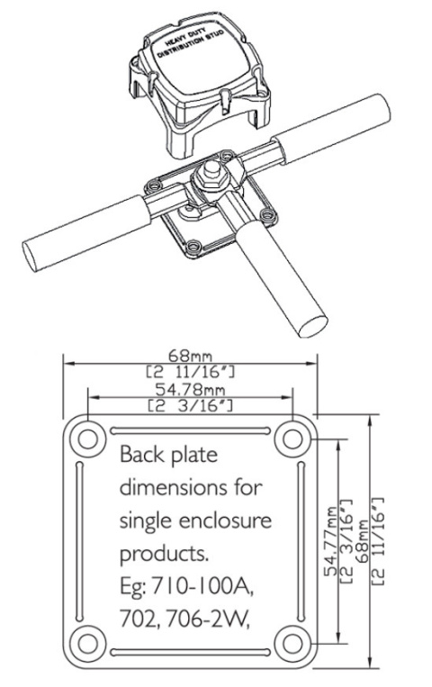Zacisk dystrybucyjny 702 pozwala na zakończenie przewodów heavy duty dla jednego lub kilku połączeń. Konturowy zacisk listwy z wyjmowalnymi płytkami bocznymi pozwala na podłączenia ze wszystkich stron przy użyciu pasków łączy.