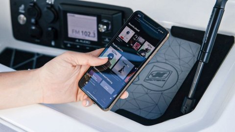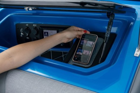 Zaprojektowany do łączenia pod spodem i bezprzewodowego ładowania przez wszystkie materiały niemetaliczne; GRP, tkanina, skóra, drewno, włókno węglowe i wszystkie wiodące morskie produkty trakcyjne, np. SeaDek, MarineMat. Rezultatem jest możliwość bezprzewodowego ładowania telefonu przy uzyskaniu stylowej estetyki.