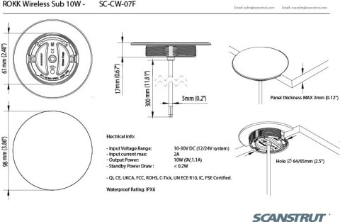 SC-CW-07F Wodoodporna ładowarka bezprzewodowa Sub ROKK Wireless 12/24V, 10W