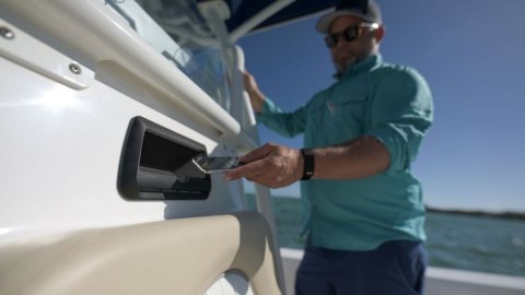 Zaokrąglone rogi i zwężający się przód eliminują wszelkie ryzyko zaczepienia, umożliwiając instalację w miejscach o dużym natężeniu ruchu łodzi, gdzie ładowanie/przechowywanie telefonu do tej pory było niemożliwe.
