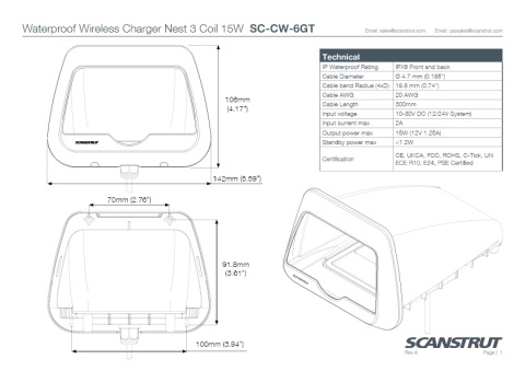 SC-CW-6GT Wodoodporna ładowarka bezprzewodowa Nest, 3 cewki, 15W, z kieszenią na telefon, 12/24V