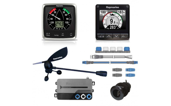 i70s i i60 System Pack zawiera kolorowy instrument i70s, wskaźnik wiatromierza i60 z przetwornikiem wiatru i DST (prędkość, głębokość, temperatura), iTC-5, 3m kabel backbone, piątnik, kabel zasilania SeaTalkng i 2 terminatory backbone.